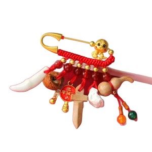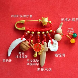 孕妇妈妈婴儿宝宝压惊安全别针狗牙猪惊骨桃木保平安胸针挂件
