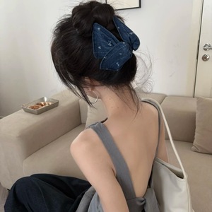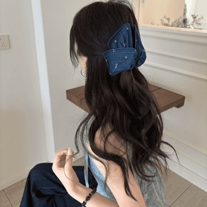 蝴蝶结爱心牛仔布三角抓夹女新款高级感盘发夹后脑勺鲨鱼夹子
