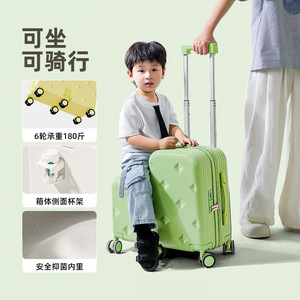 新款儿童行李箱拉杆箱20寸大容量可坐可骑登机箱万向轮6轮旅行箱