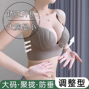 跨境大码女士无痕内衣大胸显小聚拢收副乳防下垂外扩调整型文胸罩