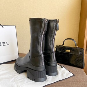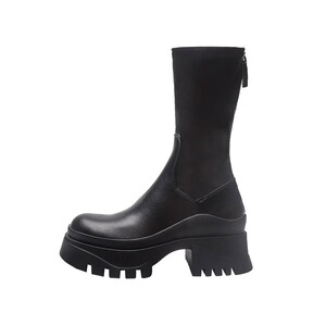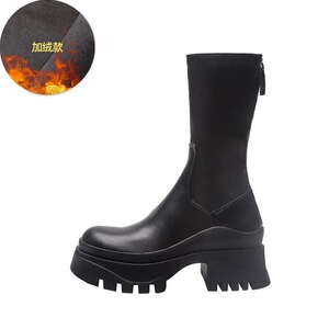 小个子显瘦厚底马丁靴子粗跟中筒瘦瘦烟筒靴后拉链软底切尔西女靴