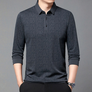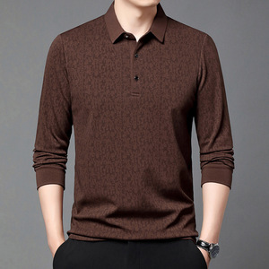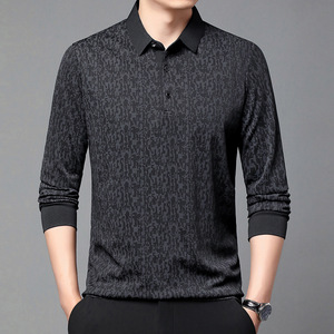 跨境男士长袖POLO衫2025春秋季新款印花休闲百搭翻领t恤衫打底衫