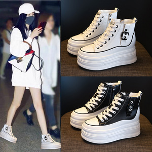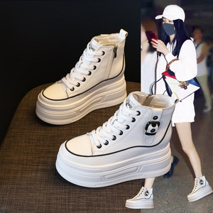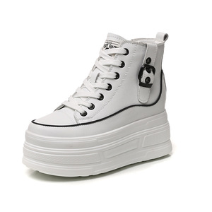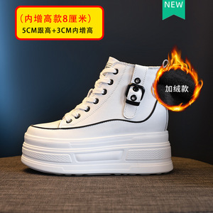 厚底马丁靴女内增高小白鞋2025秋季新款真皮韩版高帮短靴一件代发