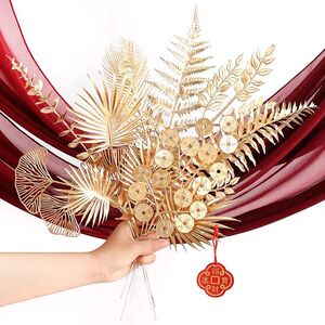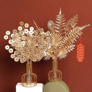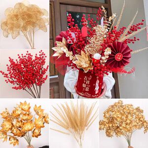金色塑料花金色凤尾银杏叶新年福桶插花材料金色假花客厅摆设插花