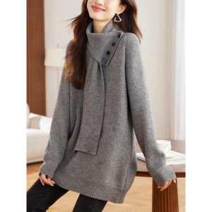 高级感围巾领毛衣裙女中长款慵懒时尚大码厚针织打底衫