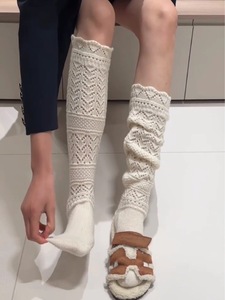 羊毛堆堆袜针织叠穿长筒袜显瘦甜美白袜镂空中筒袜花边小腿袜保暖