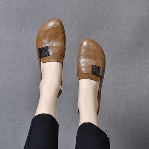 乐福鞋女真皮英伦小皮鞋软底圆头粗跟单鞋百搭中跟春秋季棕色女鞋