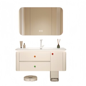 奶油风实木烤漆浴室柜洗手间洗脸洗手盆陶瓷一体盆多巴胺扫地机柜