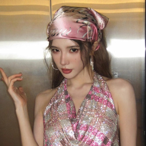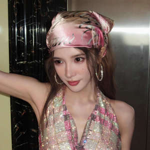 渐变粉色字母头巾女y2k千禧辣妹甜酷亚文化复古街头印花包头丝巾