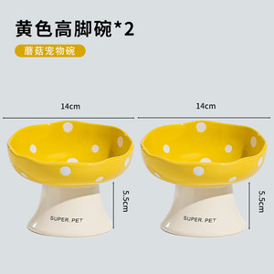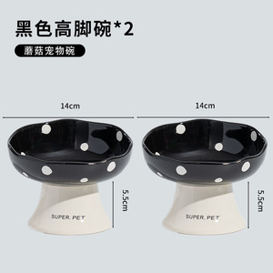 蘑菇猫碗陶瓷猫食盆增高保护颈椎防黑巴易打翻高脚宠物粮碗