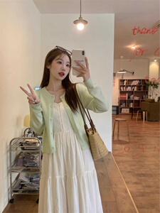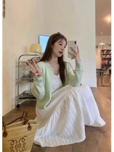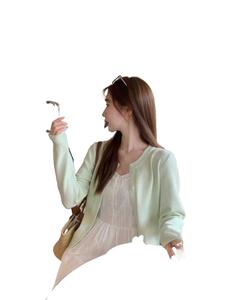 韩系穿搭薄荷绿针织开衫女春秋季2025新款温柔风气质百搭圆领上衣