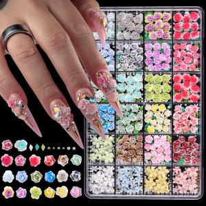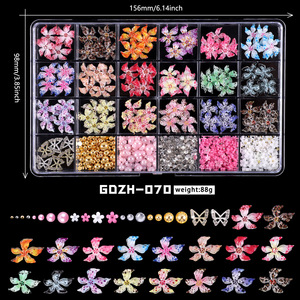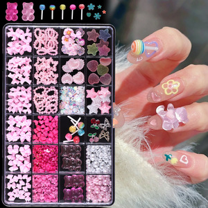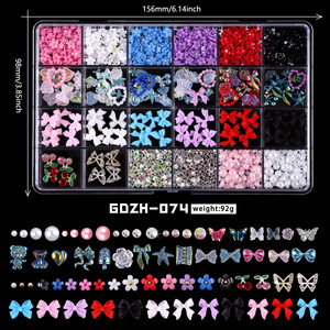跨境爆款24格盒装美甲饰品甜美法式蝴蝶结珍珠美甲套盒diy配饰
