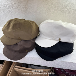 斜纹磨毛八角帽子女秋季新款韩版韩国显脸小云朵报童帽画家帽批发