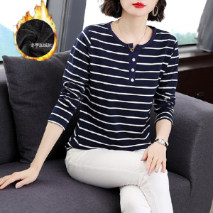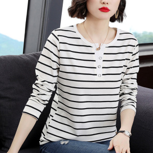 品牌女装专柜正品中年妈妈时尚上衣t恤条纹打底衫女士长袖t恤秋装