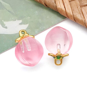 透明琉璃清新水蜜桃桃子吊坠挂件diy饰品配件项链耳饰配饰材料