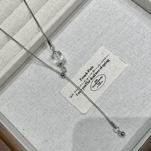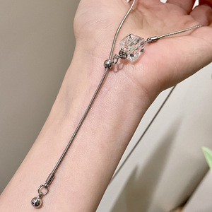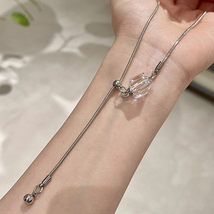 长款百搭自由调节项链女方形水晶串珠抽拉毛衣链高级感轻奢配饰潮
