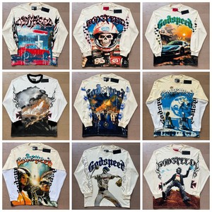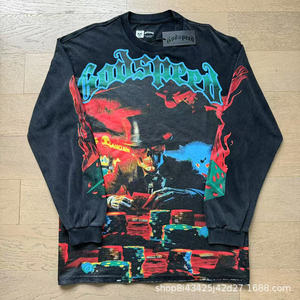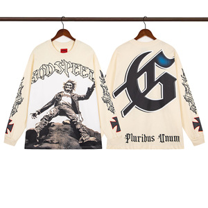 2025秋新款欧美潮牌GOD跨境男女装大码宽松摇滚乐队长袖青少年tee