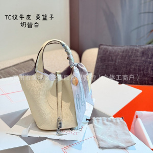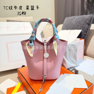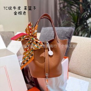 TC牛皮菜篮子18包包女2025新款高品质简约百搭真皮精致手提水桶包