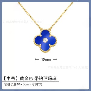 高版本CNC银925四叶草蔷薇石项链女圣诞款镀18k玫瑰金直播不掉色