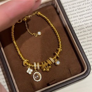 龙心盘缠跑环四叶花草手链女新中式金色冰透琉璃高级百搭手串手饰