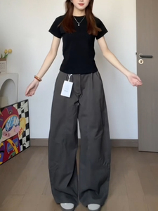 灰色廓形弯刀工装牛仔裤女夏季新款高腰宽松阔腿显瘦直筒拖地裤子