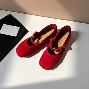 真皮小香风百搭鞋女新款平底玛丽珍鞋圆头鞋浅口单鞋女复古风舒适