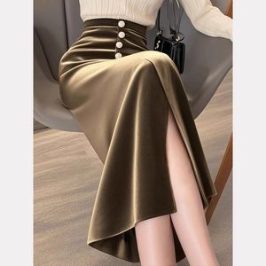 2025年秋今年流行爆款半身长裙高级感超好看洋气包臀金丝绒半身裙