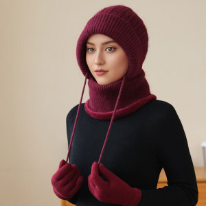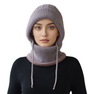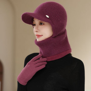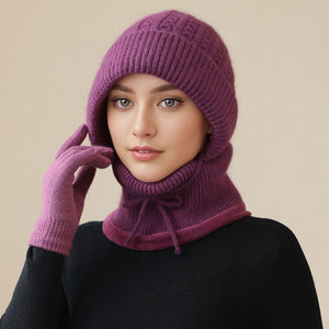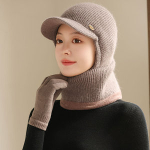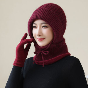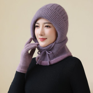 兔毛针织口罩帽子中老年人加绒保暖一体帽女妈妈冬防寒围脖连体帽