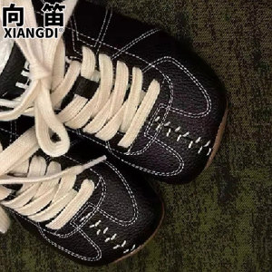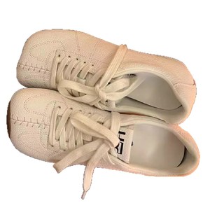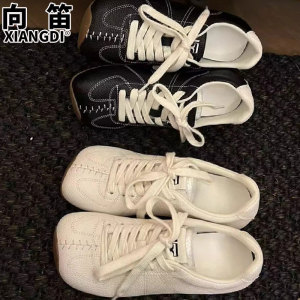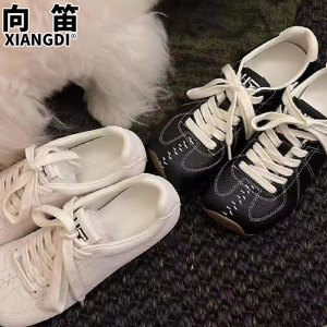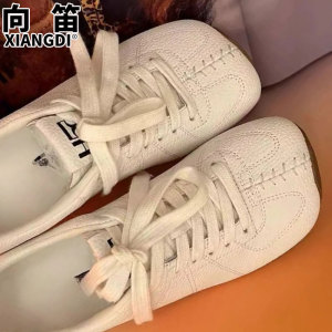 牛皮版方头小白鞋子女鞋2025秋季新款小众芭蕾风德训鞋女款阿甘鞋