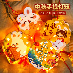 可爱中秋节玉兔灯笼幼儿园diy手工小礼物儿童手提投影花灯小礼品