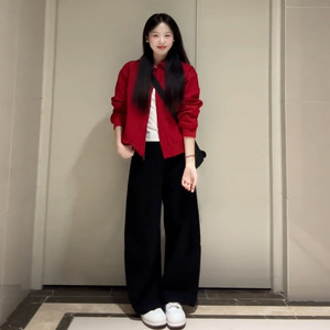 早秋复古红色翻领薄款夹克外套女秋季2025新款爆款棒球服短款上衣