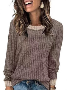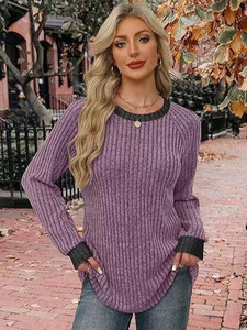 WIHOLL 女士长袖衬衫 轻薄毛衣 秋季装 2025 拼色冬季服装 优雅休