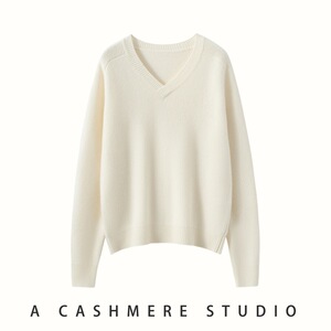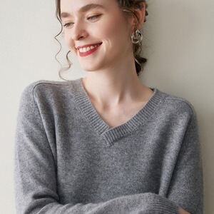 女式羊绒衫马鞍肩V领打底气质通勤显瘦上衣秋冬新款针织衫百搭