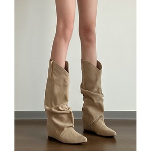 棕色西部牛仔靴百搭废土风堆堆靴女内增高显瘦复古长靴