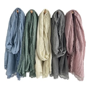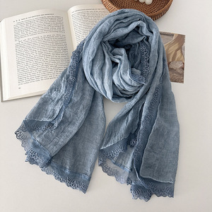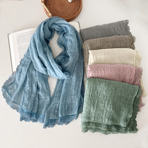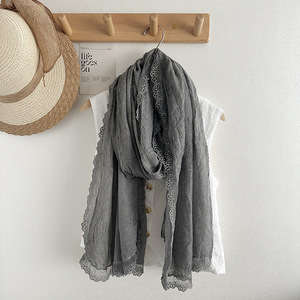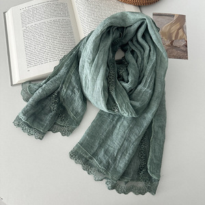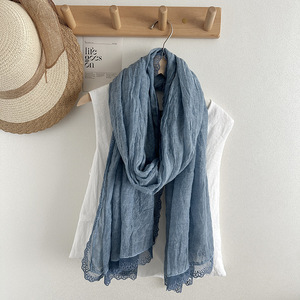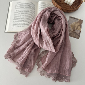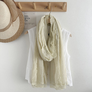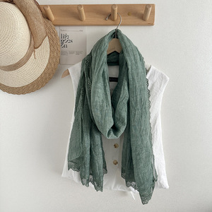 纯色蕾丝薄围巾女蕾丝边温柔棉麻丝巾护颈长纱巾围脖旅游拍照披肩