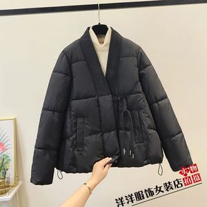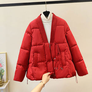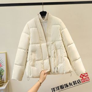 2025冬新中式国风V领设计感减龄棉袄大码宽松网红棉服羽绒棉衣女
