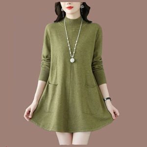 半高领毛衣女秋冬洋气妈妈秋装针织衫中长款大码显瘦毛衣裙内搭潮