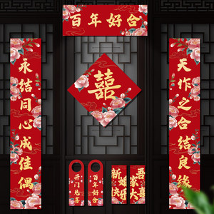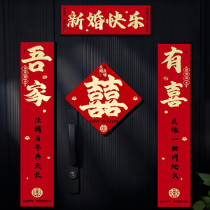 结婚磁吸对联男方婚房喜联布置婚礼入户门喜字套装婚庆用品大全