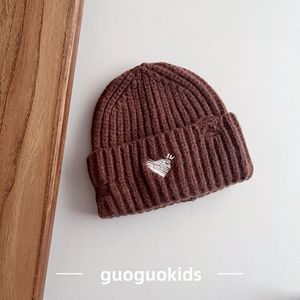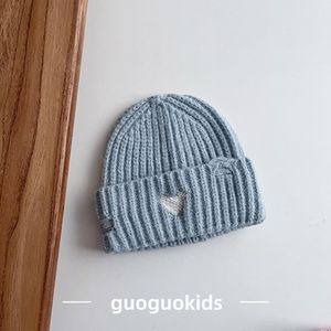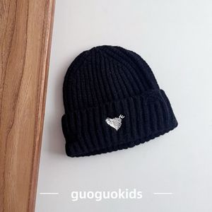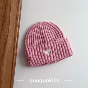 甜美爱心刺绣儿童帽子针织帽 冬季男女童时尚保暖毛线帽防风冷帽