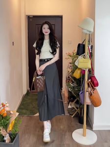 灰色西装百褶半身裙女高腰遮胯长裙子2025新款洋气显瘦气质A字裙