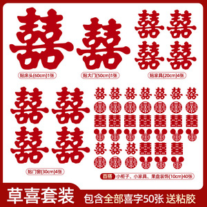 婚房喜字布置结婚专用全屋喜字贴新房卧室大小喜字套装婚庆用品