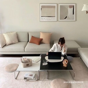 包豪斯套几不锈钢中古个性黑白色长方形边几组合简约家用客厅茶几