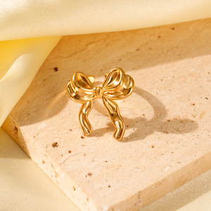 欧美简约海洋休闲风海星不锈钢戒指镀18k金夸张蝴蝶钛钢开口指环
