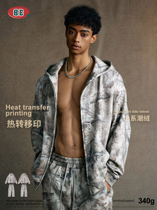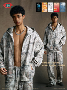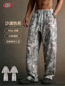 BE男装|2025冬季美式潮牌痞帅迷彩加绒卫衣卫裤外套开衫两件套男