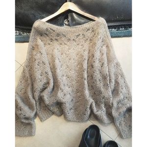 新款不晚秋冬新款高级感镂空咖色毛衣女薄款软糯慵懒针织衫上衣女