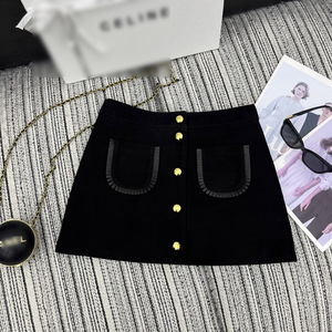 2025年秋冬CEL*新款麂皮绒面拼接翻领皮衣外套搭配短款半身裙套装
