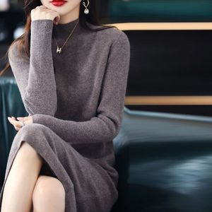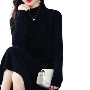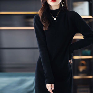 德绒半高领中长款连衣裙秋冬时尚显瘦直筒保暖长裙打底裙过膝新款
