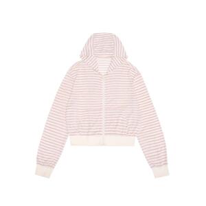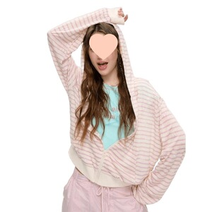 夏日蝴蝶结印花防晒长袖连帽粉白条纹开衫罩衫宽松休闲通勤外套