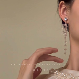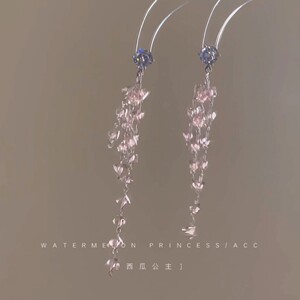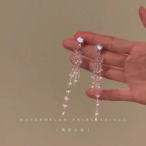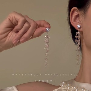 粉色锆石耳环2025新款爆款高级感长款流苏超闪耳饰女