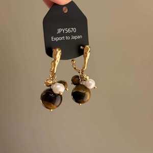 金色虎眼石珍珠耳钉女设计感小众精致独特美拉德耳饰耳环新款